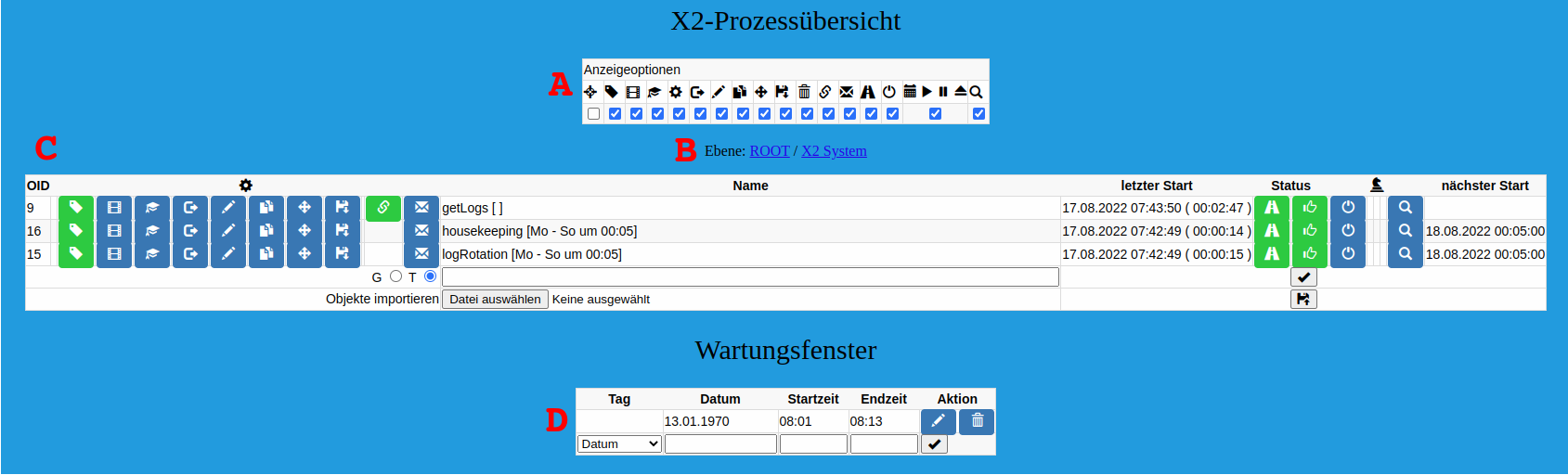 Über den Bereich der Wartungsfenster lassen sich Zeiträume erstellen, in denen das X2 keine Jobs ausführen wird. Nach dem Zeitraum werden alle nicht gestarteten Templates gestartet.